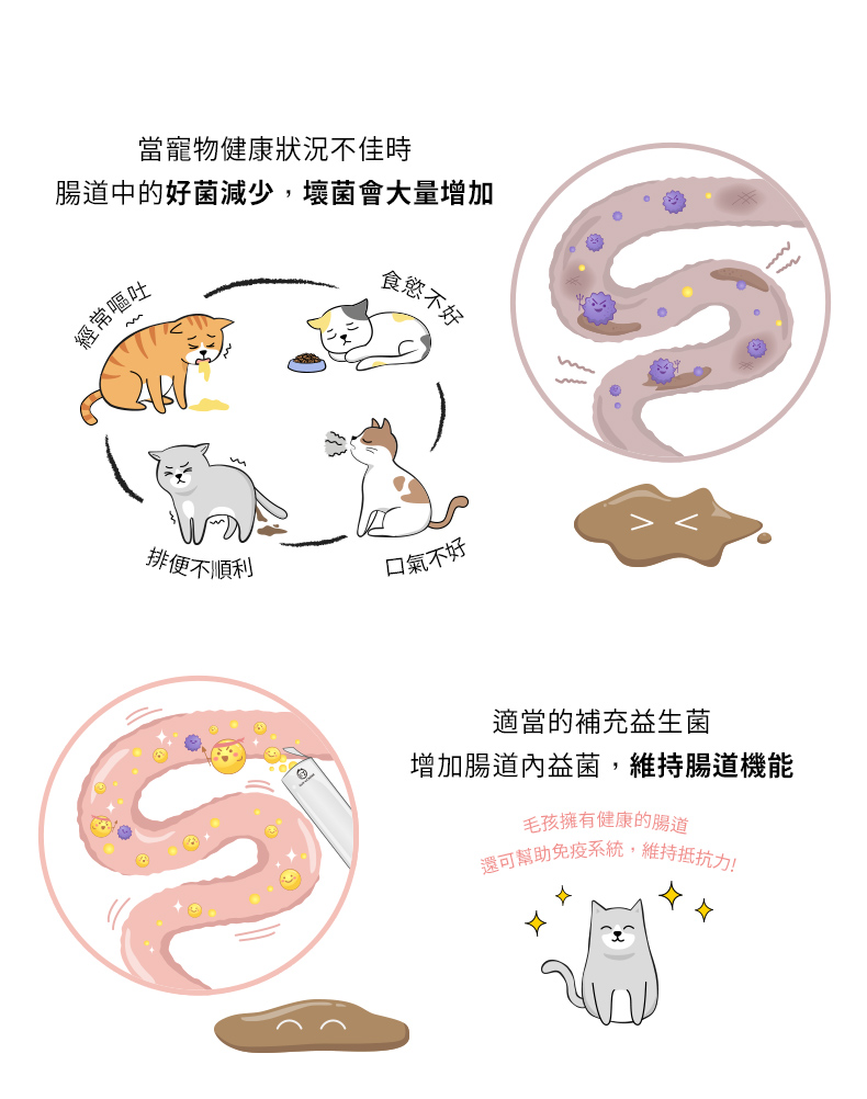 ➤ 專為貓咪設計配方,平衡腸道菌相、促進腸胃蠕動 ➤ 改善口氣芬芳、提升清新度 ➤ 維持腸道菌叢健康,幫助好菌平衡壞菌,維持免疫力